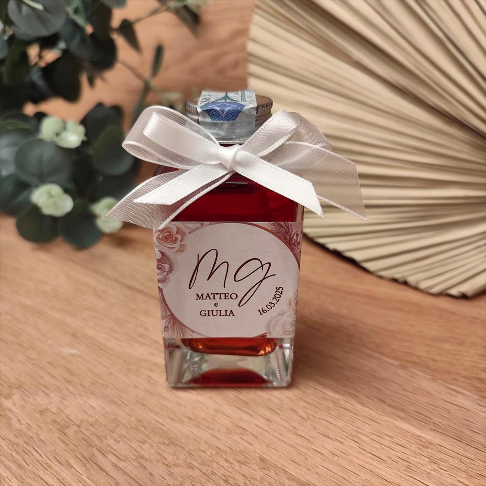 Opzionabile: Sacchetto in toulle comprensivo di 5 confetti tradizionali o ai gusti e tag di ringraziamento confezionato al collo della bottiglia € 1,90 cad