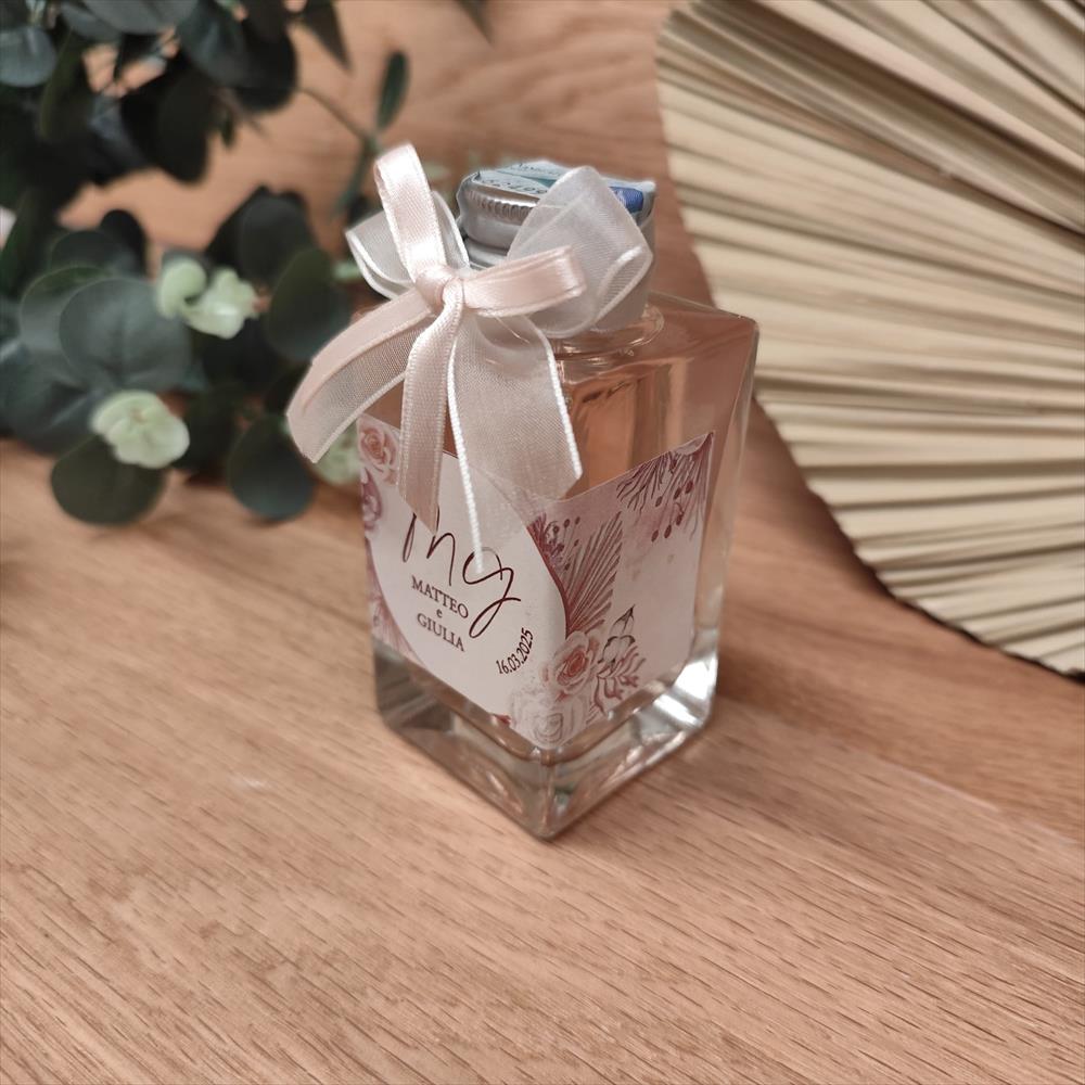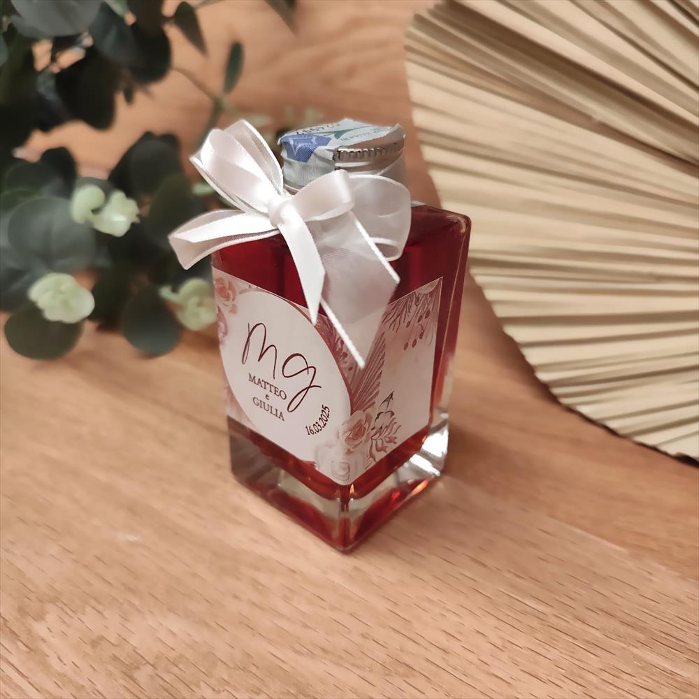 Bottiglia da 100 ml: € 11,50 cad iva inclusa, comprensiva di etichetta personalizzata e fiocchi.
