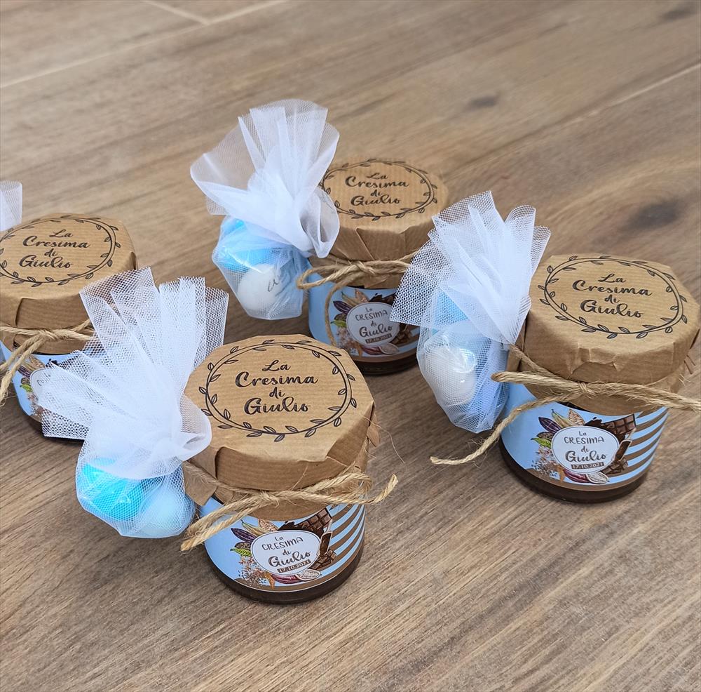 PERSONALIZZAZIONE Incluso: confezionamento con fiocchi in toulle e raso con colore a scelta, etichetta personalizzata con font e colori. Opzionabile: sacchetto in toulle comprensivo di 5 confetti tradizionali o ai gusti e tag di ringraziamento confezionato al collo del barattolo.