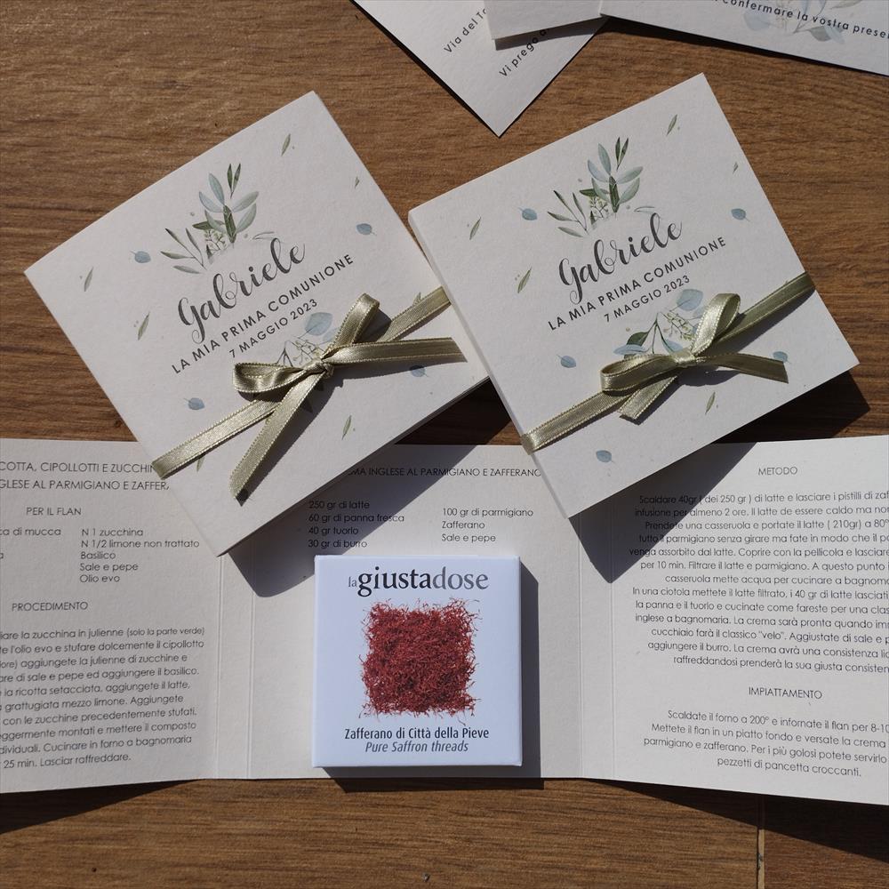 Lo zafferano è la spezia più pregiata al mondo con un valore che supera quello dell'Oro, non a caso la nostra bomboniera alimentare Zafferano IGP è denominata l’Oro Rosso, un presidio Slow Food prodotto con estrazione a mano nel territorio Umbro. Viene fornita in preziosi pistilli confezionati in un' apposita custodia in carta o in barattolo di vetro per preservarne tutta la fragranza, completamente personalizzabile con consigli utili e ricette! Un'idea originalissima per una bomboniera versatile e adatta ad ogni tipo di evento come matrimoni, battesimi e anniversari..