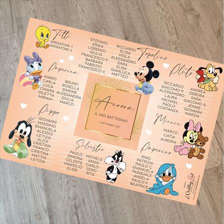 Disponibile in stampa diretta su pannello rigido in cartone exellent 70x100 cm, oppure a singoli foglietti personalizzati con cui potrai creare le ambientazioni che più ti piacciono. Abbineremo i corripondenti segnatavoli, sempre realizzati con la stessa grafica per mantenere lo stesso tema.